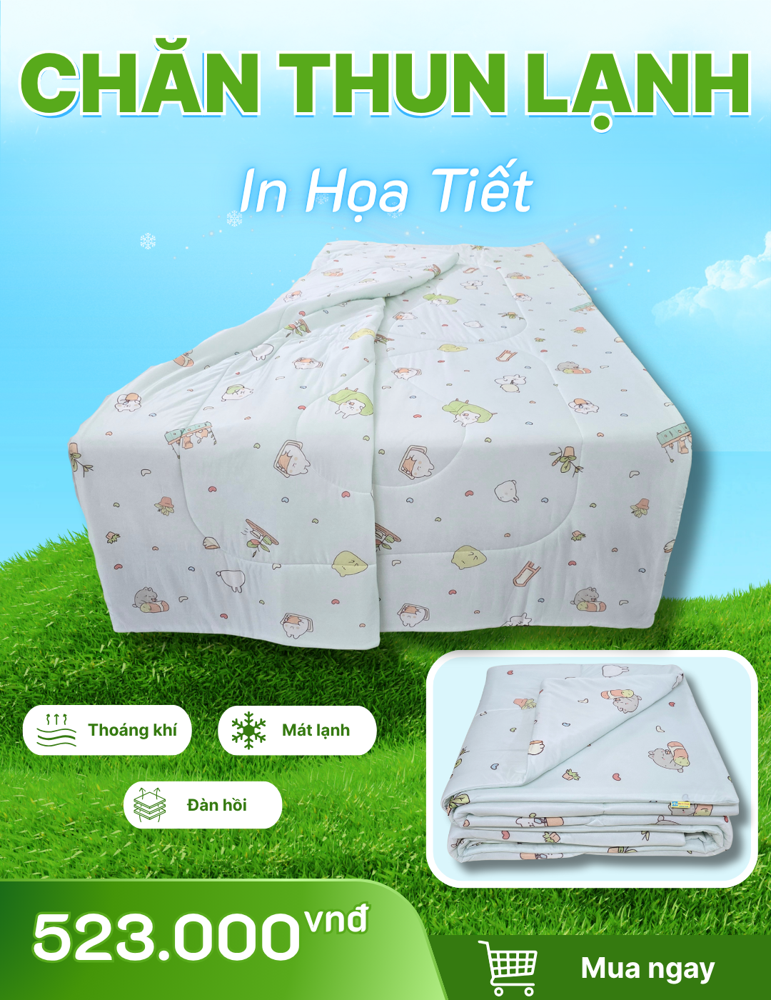 - Tên sản phẩm: Chăn chần Thun Lạnh in Họa Tiết