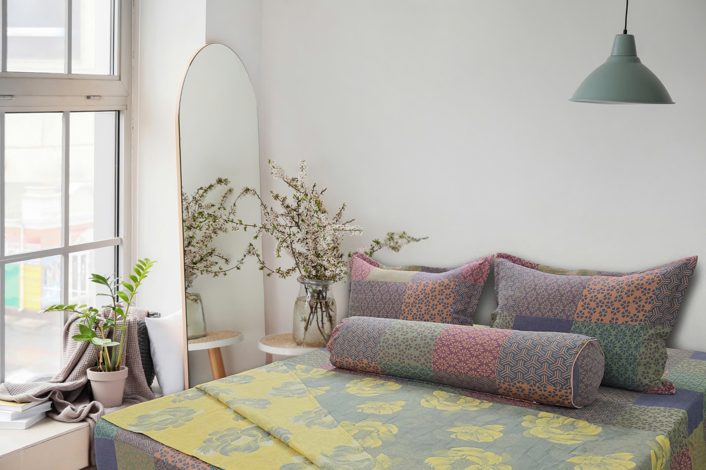 – Cả hai mặt đều có họa tiết hoa đồng bộ, nhưng phối màu đối lập – tạo điểm nhấn tinh tế cho không gian ngủ.