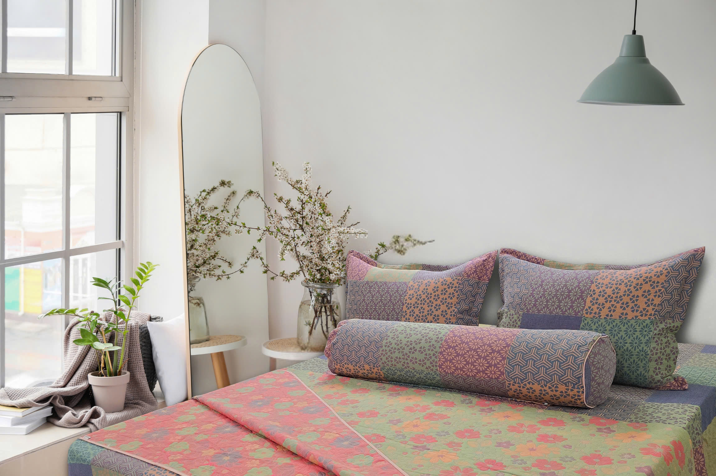– Cả hai mặt đều có họa tiết hoa đồng bộ, nhưng phối màu đối lập – tạo điểm nhấn tinh tế cho không gian ngủ.