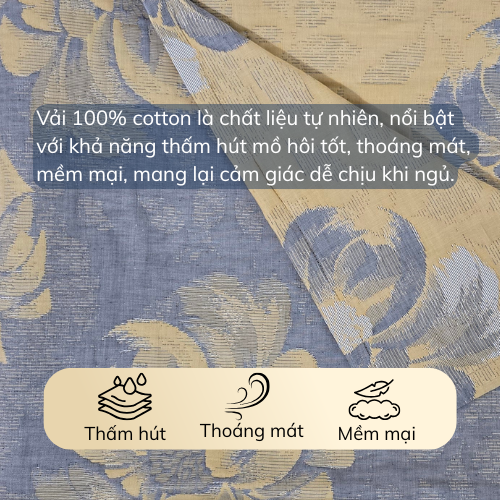 –  Cotton tự nhiên giúp chăn luôn thoáng khí, không bí nóng.