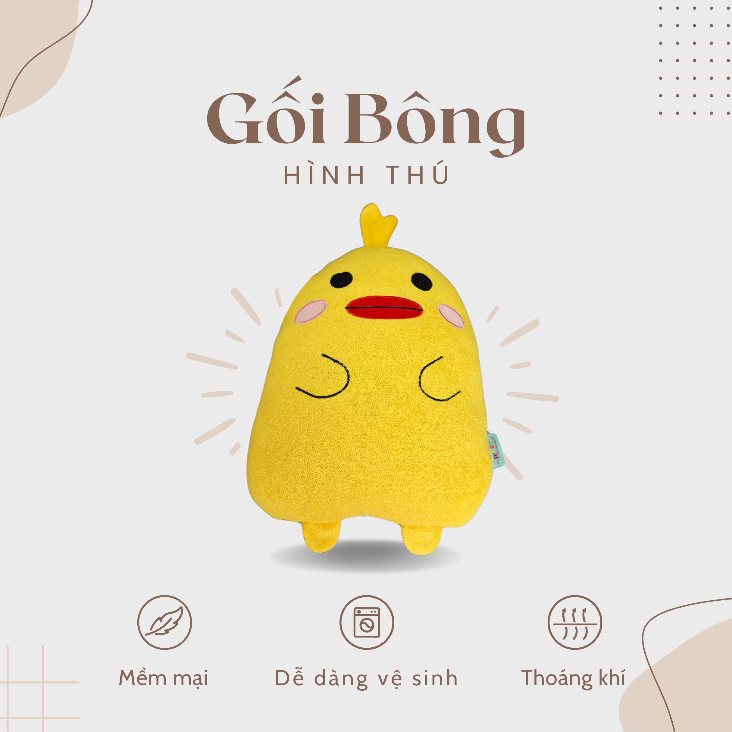 - An Toàn và Sạch Sẽ: Chất liệu vải và xơ polyester dễ dàng giặt sạch, nhanh khô và không bị biến dạng sau khi giặt. Gối không chứa các hóa chất độc hại, an toàn tuyệt đối cho sức khỏe của bé.