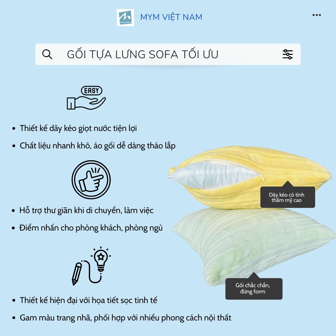 Gối tựa lưng sofa có kích thước 40x40cm không chỉ là món phụ kiện trang trí, gối còn hỗ trợ tốt cho vùng lưng khi ngồi lâu, giúp giảm mỏi, mang lại cảm giác dễ chịu trong suốt quá trình làm việc hoặc thư giãn.