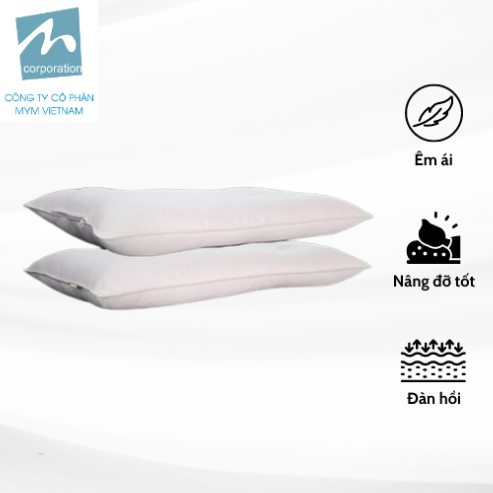 Ruột gối sử dụng xơ microfiber mềm mịn tương tự sợi lông vũ, nhưng có ưu điểm tốt hơn vì là sợi Polyester nên ngăn ngừa các loại bọ ký sinh trên sợi tự nhiên, nhanh khô sau khi giặt, không bị vón cục.